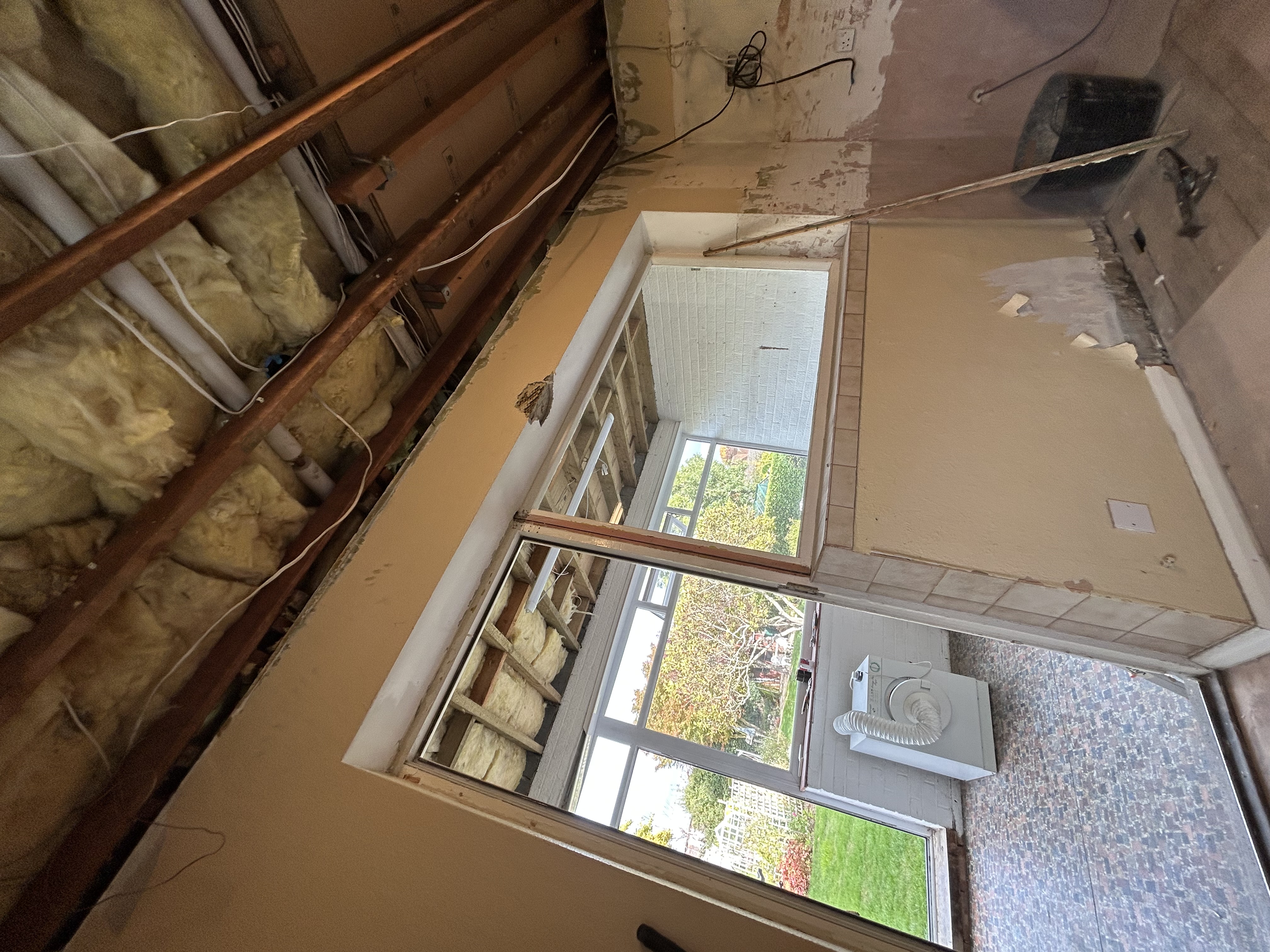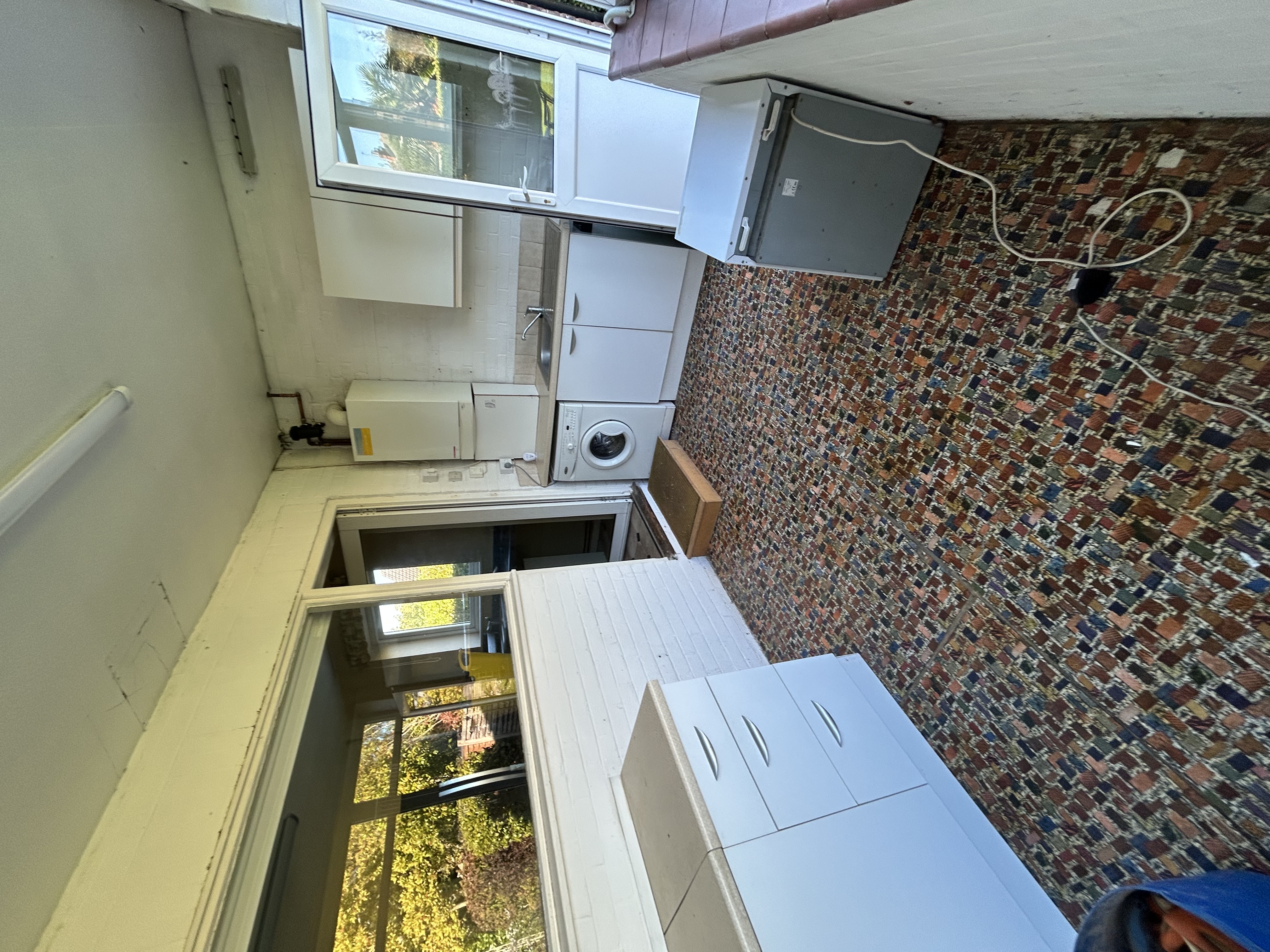 We removed the internal wall and installed an RSJ steel beam. The window and door openings were reduced in size to accommodate the new kitchen layout. We also installed a new boiler and underfloor heating.